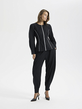 Жакет женский приталенного силуэта с объёмными плечами — это идеальный выбор для создания стильного и современного образа. Полоска придаёт жакету элегантность и изысканность. Молния на жакете - спортивный шик во всей красе!
